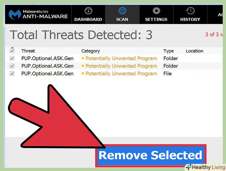 Видаліть файли, знайдені антивірусом.якщо антивірус виявив шкідливі програми, видаліть їх або відправте в «карантин» (це залежить від антивіруса); в цьому випадку знайдені програми більше не будуть завдавати шкоди комп'ютеру.