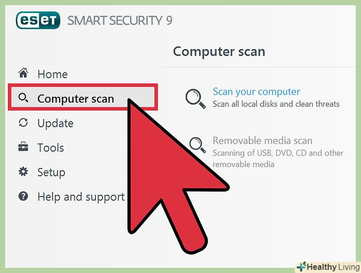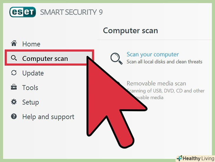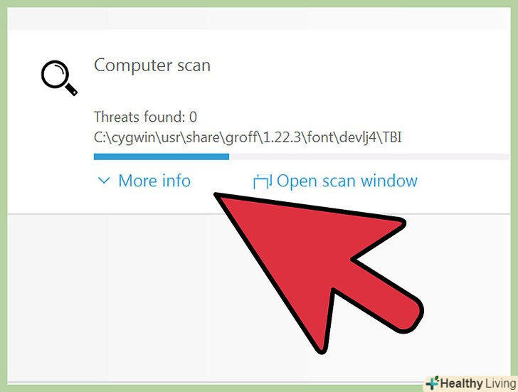 Проскануйте систему антивірусною програмою.обов'язково встановіть антивірус або не вимикайте Захисник Windows. Відкрийте антивірусну програму і запустіть сканування операційної системи. На Повне сканування піде близько години.- Якщо на комп'ютері немає антивіруса, скачайте його на іншому комп'ютері і скопіюйте на ваш комп'ютер за допомогою USB-накопичувача. Встановіть антивірус і проскануйте систему.