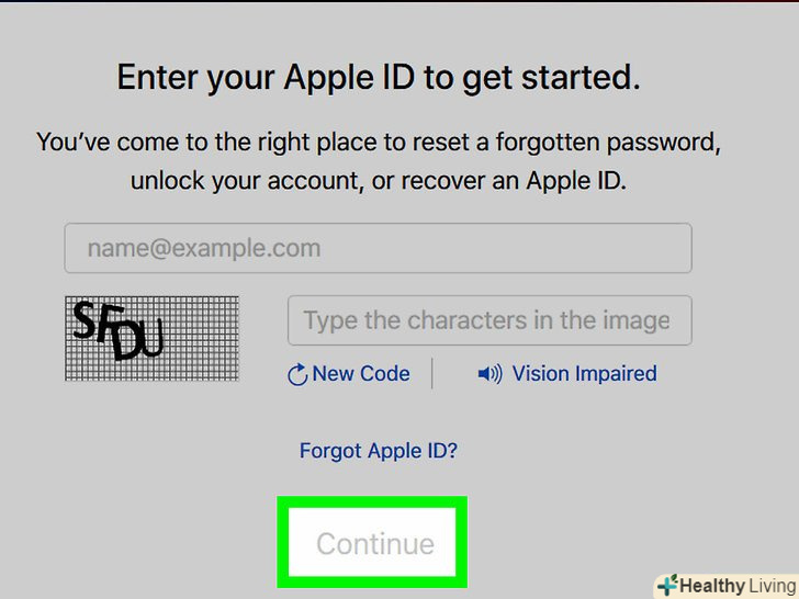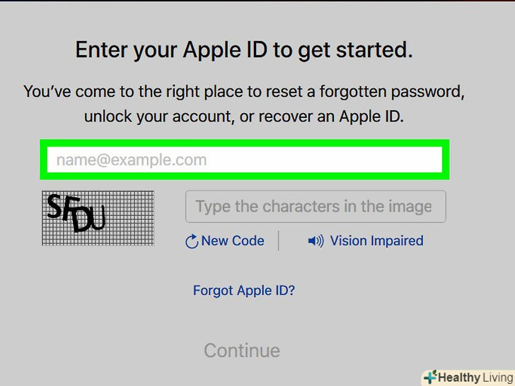 Скиньте пароль.якщо ви вирішили відповісти на контрольні запитання, вас попросять створити новий пароль ідентифікатора Apple ID.- Якщо ви вирішили відновити пароль по електронній пошті, натисніть на посилання для скидання пароля в повідомленні від Apple.