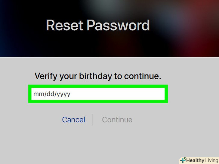 Підтвердьте свій день народження.введіть свій день народження, щоб продовжити процедуру відновлення пароля Apple ID.
