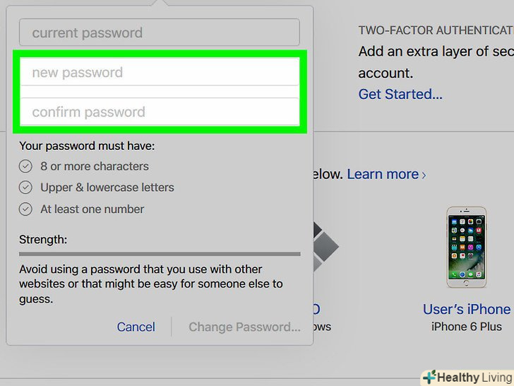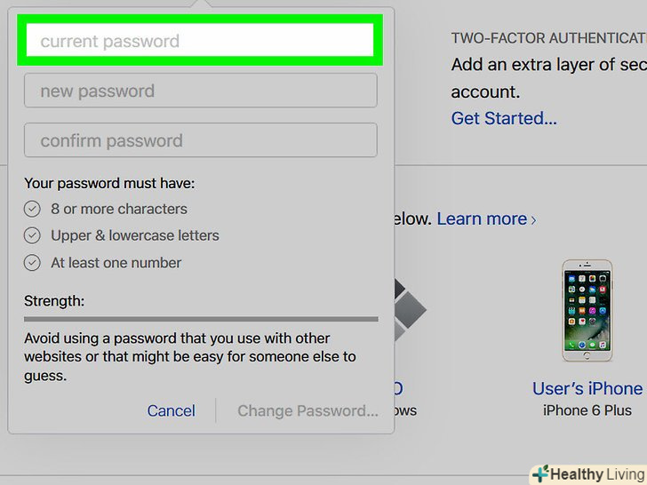 Введіть свій поточний пароль у верхнє поле в діалоговому вікні.