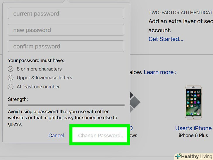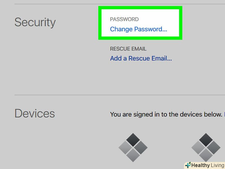 Натисніть або торкніться < span class="nowrap" title="This is not a clickable button; it illustrates the button one should find." style="font-family: Segoe UI, Frutiger, Frutiger Linotype, Dejavu Sans, Helvetica Neue, Arial, sans-serif;letter-spacing:0px;padding:0em .6em; border:1px solid; border-color:#AAA #555 #555 #AAA; -moz-border-radius: 0px; -webkit-border-radius: 0px; border-radius: 0px; background-color: #F2F2F2; background-image: -moz-linear-gradient(top, #FCFCFC, #E0E0E0); background-image: -o-linear-gradient(top, #FCFCFC, #E0E0E0); background-image:-webkit-linear-gradient(top, #FCFCFC, #E0E0E0); background-image: linear-gradient(top, #FCFCFC, #E0E0E0);">змінити пароль в лівій частині вікна, в розділі «Безпека».