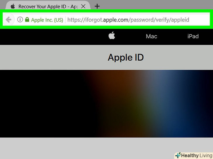 Перейдіть на сайтIforgot.apple.com. використовуйте посилання ліворуч або введіть адресу iforgot.apple.com в адресний рядок браузера.- Відкрийте сторінку на комп'ютері або в мобільному веб-браузері.