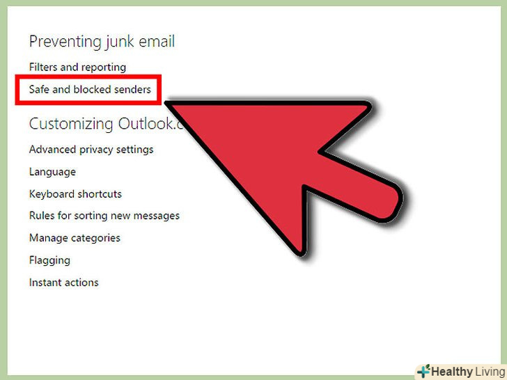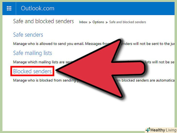 Натисніть на "надійні та заблоковані відправники". його можна знайти в другому стовпці, під заголовком"запобігання небажаної пошти". Якщо ви натиснете на цю опцію, відкриється список трьох опцій.