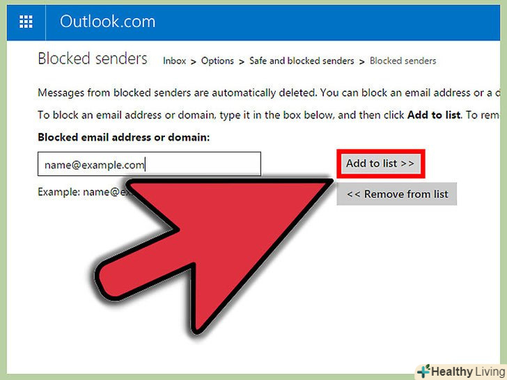 Натисніть на "заблоковані відправники".відкриється форма, яка дозволяє додавати електронні адреси, які ви хочете заблокувати. Будь-який лист, отриманий від цієї адреси, буде автоматично видалено, тому переконайтеся, що ви дійсно хочете заблокувати цю адресу.