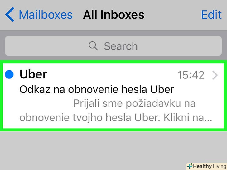 Натисніть на лист з посиланням на скидання пароля Uber.якщо у вхідних листах цього листа немає, відкрийте папку "Спам»або "кошик". Користувачі Gmail часом знаходять цей лист в папці»оповіщення".