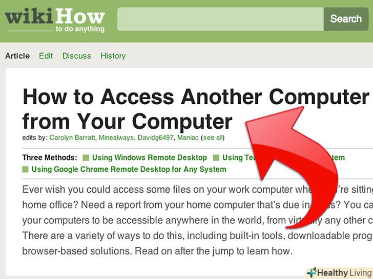 Підключіться до свого віддаленого робочого столу через браузер.для того, щоб підключитися до віддаленого робочого столу, вам знадобиться використовувати сервіс, що відкриває доступ до Вашого комп'ютера через веб-браузер або програму, яка не потребує установки. Найкраще скористайтеся програмами Chrome Remote Desktop і TeamViewer.