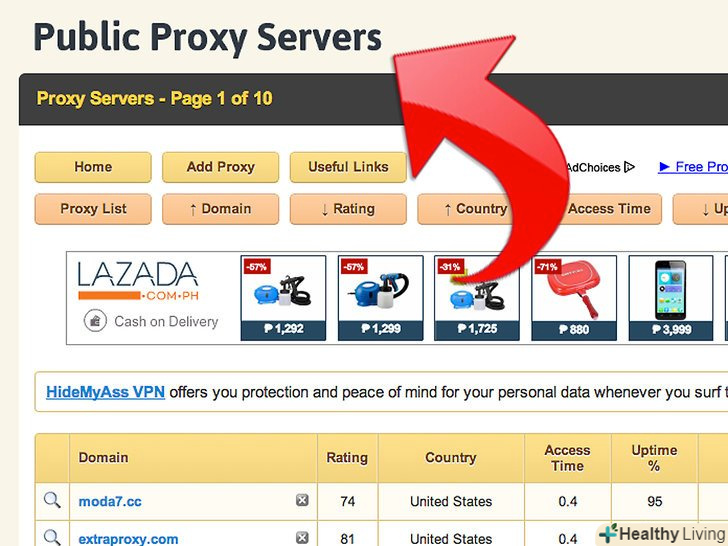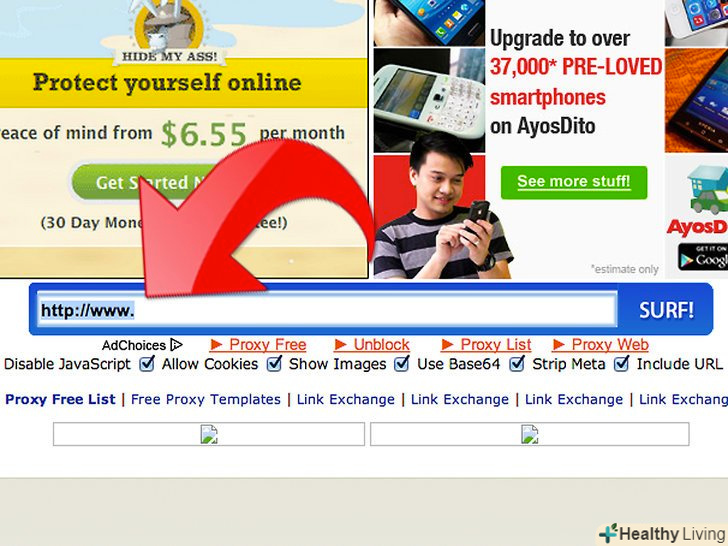 Виберіть сайт з проксі.якщо сайт заблокований, спробуйте інший. При виборі сайтів зі списку, віддавайте перевагу тим, які географічно до вас ближче. Це допоможе мінімізувати втрату швидкості. Використання проксі-серверів з інших країн призведе до завантаження сторінки мовою цієї країни.