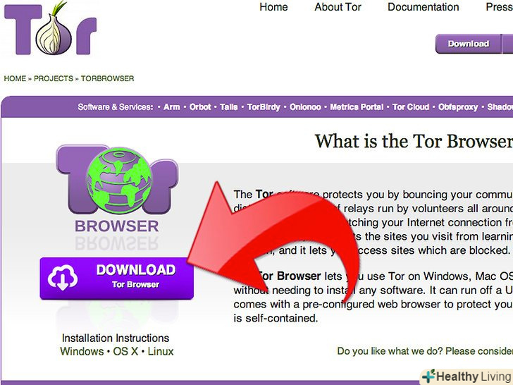 Скачайте пакет програми Tor. Tor-це безкоштовна система проксі-серверів, завдяки якій ви можете зберігати анонімність при відвідуванні сайтів через браузер. Інформація відскакує від багатьох різних вузлів, які існують у всьому світі. Ця програма дозволяє обходити будь-які брандмауери і блокування, встановлені на з'єднанні. Недоліком цієї системи є повільне завантаження сайтів, так як дані повинні подолати велику відстань поки доберуться до вас.- Tor є автономною програмою, яка не потребує установки. Це робить її особливо зручною для перегляду сайтів зі школи або роботи. Ви можете записати її на флешку і вставити в комп'ютер. Ця програма працює на операційних системах Windows, Mac і Linux.