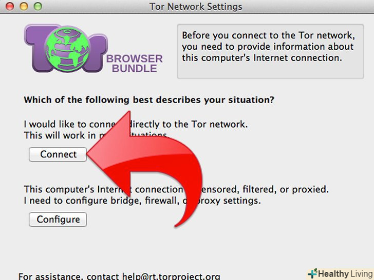 Відкрийте браузер. Tor є модифікованою версією Firefox, тому вони мають схожий інтерфейс. Коли ви відкриєте програму, то побачите вікно, в якому відображений статус з'єднання. Браузер відкриється, коли з'єднання буде встановлено.- Тільки трафік, відправлений через браузер Tor (Firefox) буден відправлений через мережу Tor. Це означає, що Internet Explorer, Chrome, Safari і будь-який інший браузер не будуть анонімізовані через мережу Tor. Звичайний Firefox також не буде працювати з даною програмою.