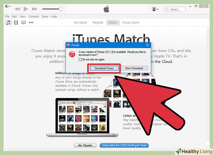 Оновіть iTunes (якщо необхідно).якщо для iTunes доступне оновлення, на екрані з'явиться відповідне попередження( коли ви запустите iTunes); в цьому випадку натисніть «Оновити».