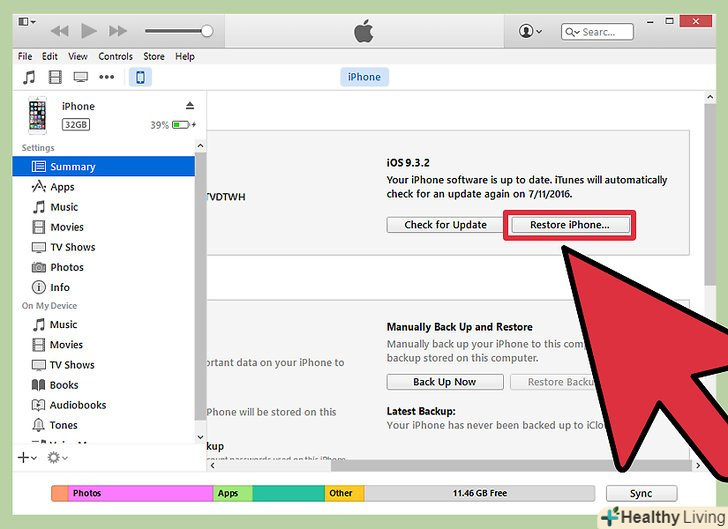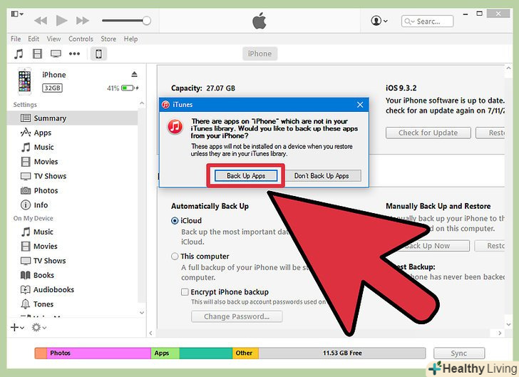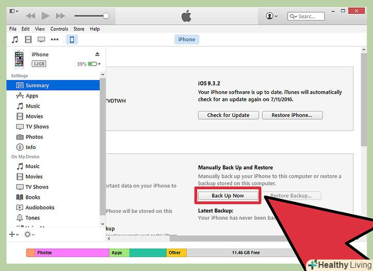 Створіть резервну копію потрібних файлів.коли ви скинете налаштування смартфона, буде видалена вся інформація, тому скопіюйте важливі файли на комп'ютер або в хмарне сховище. Підключіть телефон до комп'ютера і запустіть резервне копіювання; як правило, резервні копії створюються автоматично на більшості телефонів і планшетів, якщо підключити їх до комп'ютера.- На iPhone відкрийте iTunes, клацніть правою кнопкою миші по значку пристрою на панелі "Пристрої"і виберіть "Резервне копіювання" . Переконайтеся, що iCloud вимкнено; в іншому випадку ви не зможете створити резервну копію в iTunes.[1]