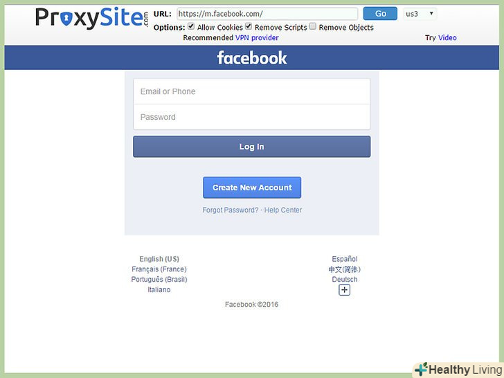 Введіть адресу веб-сторінки.на сайті проксі-сервера відобразиться текстове поле, в яке введіть адресу веб-сторінки, яку потрібно відкрити.- Багато проксі-серверів перенаправлять вас на іншу панель пошуку, щоб спростити перегляд.