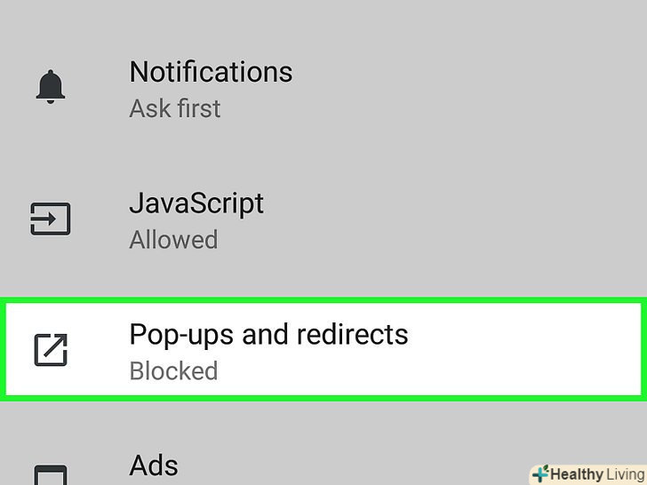 Натисніть "спливаючі вікна".- Ця опція називається "блокувати спливаючі вікна" в iOS.