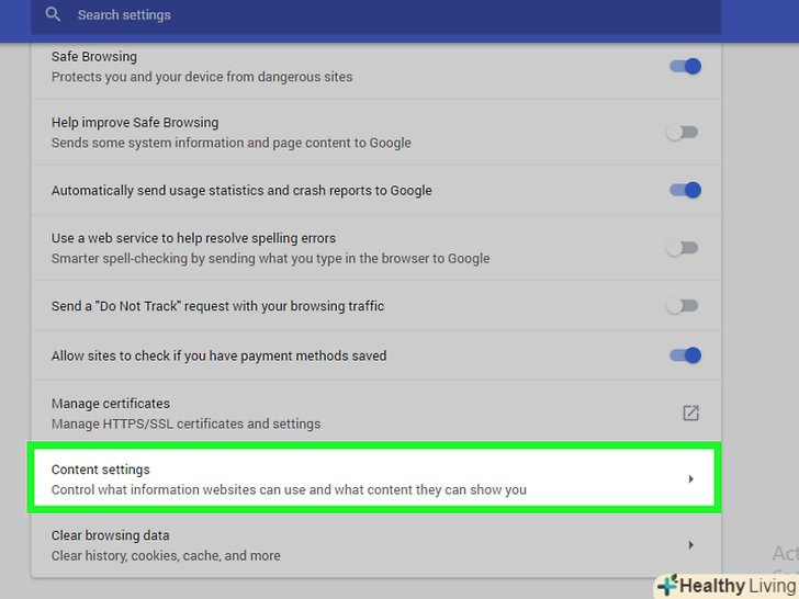 Натисніть " Налаштування вмісту "(у розділі «Конфіденційність»).