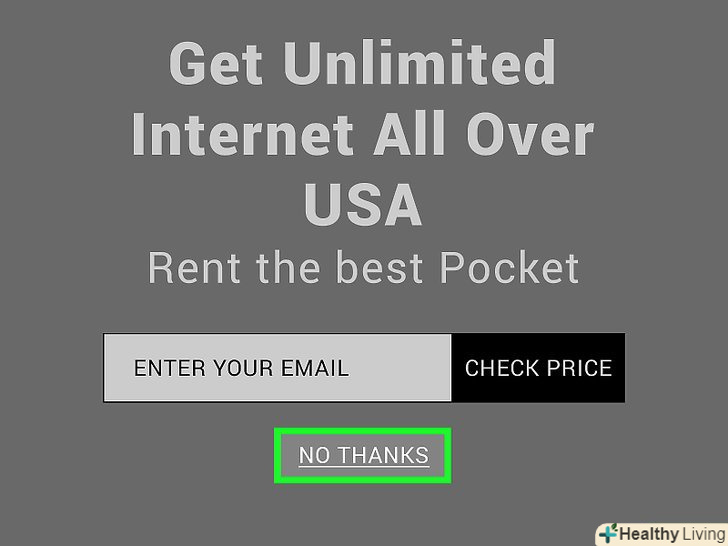 Спробуйте клацнути по посиланню або кнопці» dismiss«,» leave page«, «close,» no thanks«,» вихід«,» піти«,» закрити«,» ні " або аналогічної.таке посилання або кнопка закриття може відобразитися замість значка "X".- Спробуйте не натискати вміст спливаючого вікна . В іншому випадку ви можете перейти на небезпечний веб-сайт.