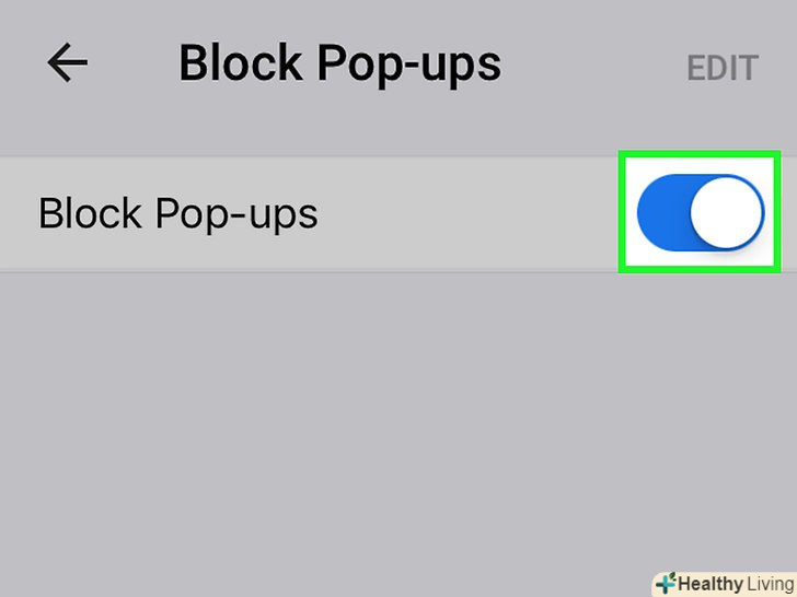 Пересуньте повзунок у "блокувати спливаючі вікна «в положення»включити".