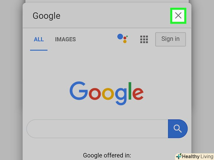 Пошукайте маленький значок " X " у верхньому правому куті спливаючого вікна.у деяких рекламних оголошеннях цей значок не помітний на тлі малюнка.- Чим менше екран пристрою, тим більш непомітною буде кнопка закриття.