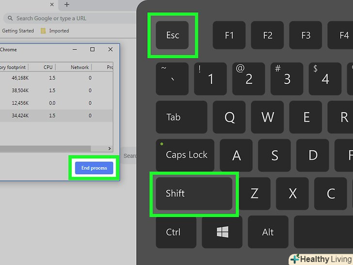 (Chrome Windows або Mac OS X) Натисніть⇧ Shift+ Esc , виберіть вкладку зі спливаючим вікном, а потім натисніть «Завершити процес». [3] якщо на комп'ютері Ви користуєтеся Chrome і не можете закрити вкладку, вбудований диспетчер завдань Chrome вирішить цю проблему.