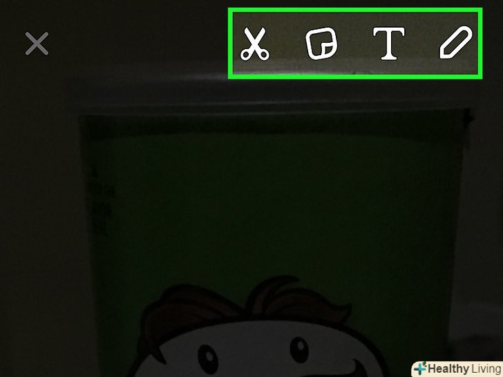 - Скористайтеся інструментами у верхній частині екрана, щоб додати заголовок, наклейку або намалювати що-небудь на знімку.