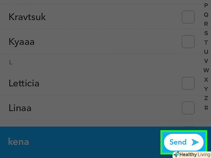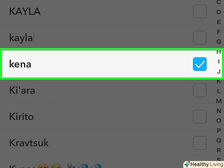 Виберіть друзів.торкніться імен друзів, яким ви хочете надіслати знімок.- Щоб додати знімок до історії, торкніться кнопки "Моя історія" у верхній частині екрана.