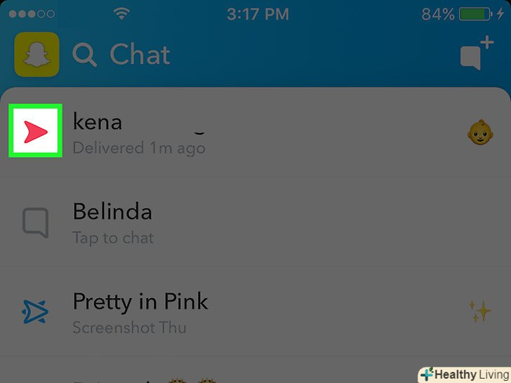 Перевірте статус знімка.знімок буде вказано на екрані «чати» в хронологічному порядку з іншими відправленими і отриманими знімками.- Якщо знімок ще не відкривали, зліва від нього буде стояти одноколірна стрілка. Крім дня відправки, під знімком також стоятиме слово «Доставлено».