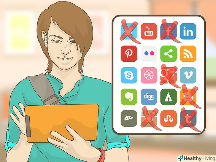 Виберіть соціальні мережі.під час паузи можна повністю припинити користуватися всіма соціальними мережами або тільки деякими з них. Instagram Facebook і Twitter, наприклад, ви хочете відпочити від Facebook і Twitter, але користуватися Instagram.[3]- Не існує помилкового підходу до вибору мереж, від яких слід відпочити. Для початку рекомендується обміркувати причини такого рішення, після чого тимчасово перестати користуватися тими мережами, які безпосередньо заважають вам досягти поставлених цілей.