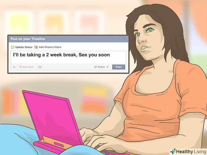 Повідомте про своє рішення друзям і рідним.якщо ви вирішили проводити менше часу в соціальних мережах, можна повідомити друзям і передплатникам про своє рішення взяти паузу. В такому випадку люди будуть знати, чому ви не відповідаєте на повідомлення або перестали бувати онлайн в соціальних мережах.[5] до того ж, відповідальність також допоможе вам стримуватися, коли захочеться включити телефон і відкрити програму.- При бажанні можна призначити публікацію матеріалів за розкладом навіть під час перерви.[6]