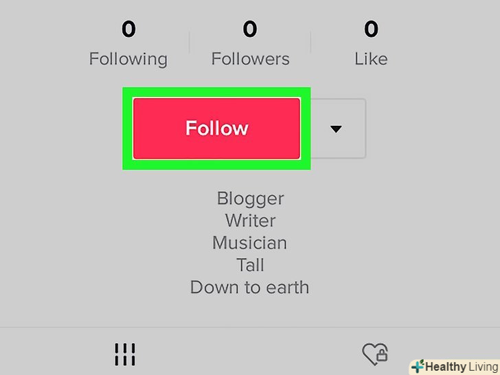 Проскануйте QR-код друга, у якого є аккаунт Tik Tok. щоб друг показав вам код на своєму пристрої, він повинен торкнутися значкав нижньому лівому кутку, натиснути на значок у вигляді стилізованого квадрата з горизонтальною рисою по центру в правому верхньому куті, а потім торкнутися опції «мій TikCode». Також код можна відкрити, якщо перейти на сторінку профілю, торкнутися значка налаштувань, а потім натиснути «Мій TikCode».