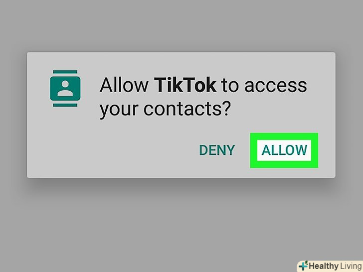 ТоркнітьсяДозволити У спливаючому вікні. так ви дозволите Tik Tok доступ до контактів на пристрої.