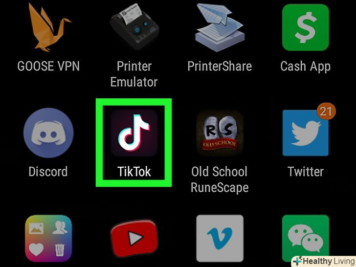 Запустіть програму Tik Tok. натисніть на значок у вигляді білої музичної ноти на чорному тлі-значок знаходиться на головному екрані або на панелі додатків.
