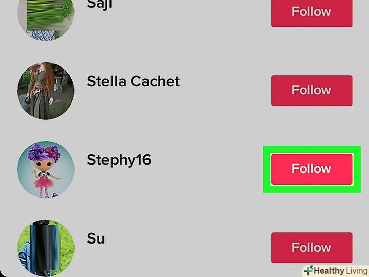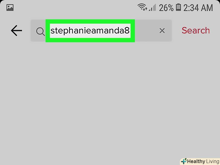 Введіть ім'я користувача свого друга в рядку пошуку.у міру введення відобразяться відповідні імена користувачів.- Переконайтеся, що ви перебуваєте на вкладці "Користувачі"на сторінці пошуку. Якщо ви перебуваєте на вкладці "музика" або "хештеги«, натисніть» користувачі" у верхньому лівому куті, щоб переглянути список імен користувачів.