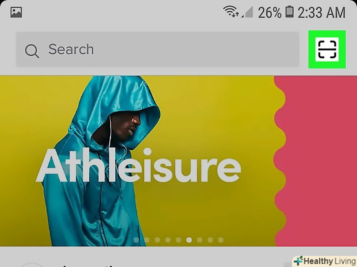 Торкніться значка у вигляді стилізованого квадрата з горизонтальною рисою по центру. цей значок знаходиться в правому верхньому куті. Включиться сканер QR-коду.