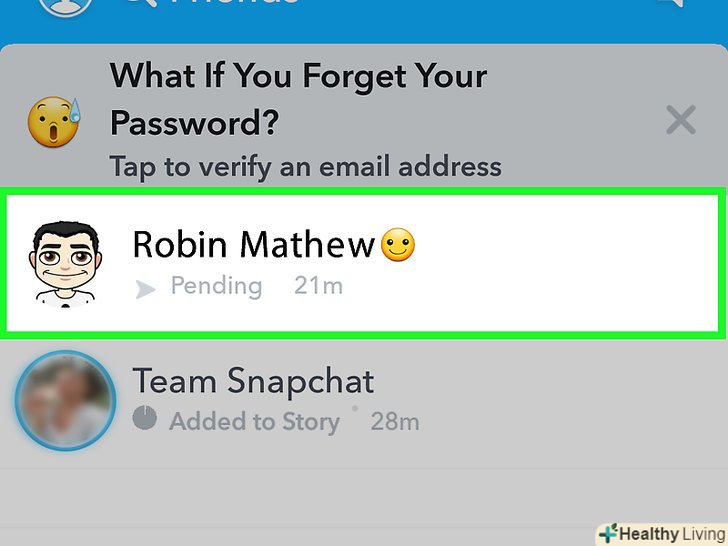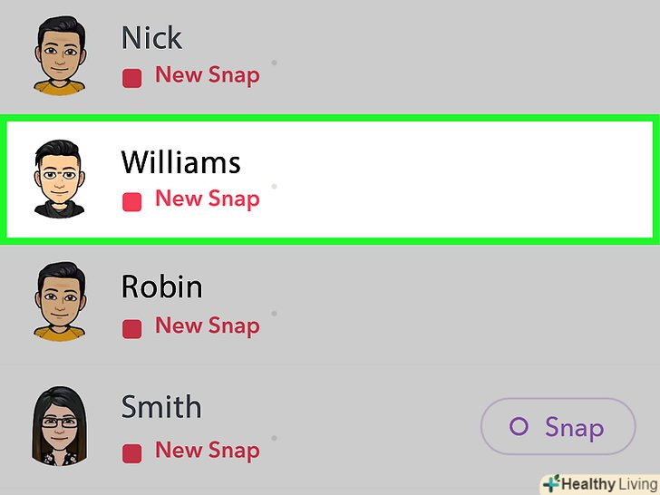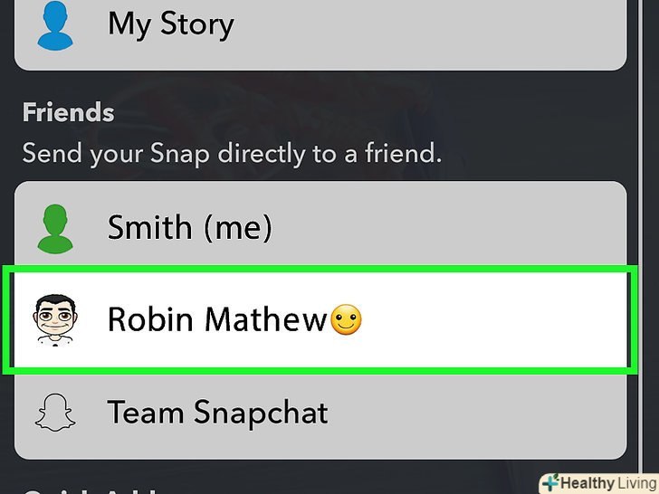 Виберіть друга.торкніться імені друга, щоб вибрати його як одержувача знімка.- Оскільки ваша мета-додати друга до списку "Найкращі друзі", не надсилайте знімки іншим користувачам.