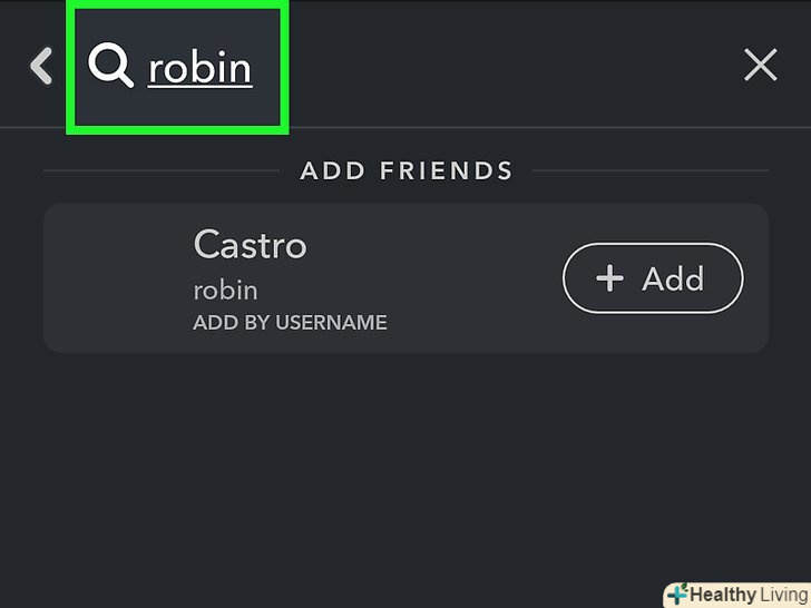 Введіть ім'я користувача свого друга.після цього буде проведений пошук друга в базі даних Snapchat. Ви побачите, як на сторінці з'явиться його ім'я користувача.