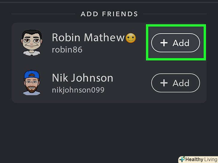 Торкніться+додати поруч з ім'ям користувача одного, щоб додати його в свій список друзів.
