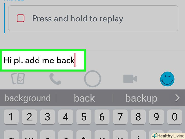 Введіть повідомлення.Введіть повідомлення, яке хочете надіслати своєму другові.- При бажанні в повідомлення також можна вставити зображення з Фотоплівки. Для цього натисніть на іконку "Фото" (нагадує картку) під текстовим полем і виберіть потрібне фото.