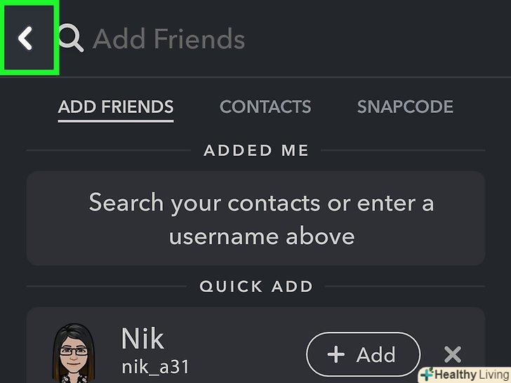 Поверніться на сторінку камери. якщо ви цього ще не зробили, торкніться кнопки "Назад" у верхньому лівому куті екрана, щоб повернутися на сторінку профілю, а потім торкніться Х, щоб закрити її.
