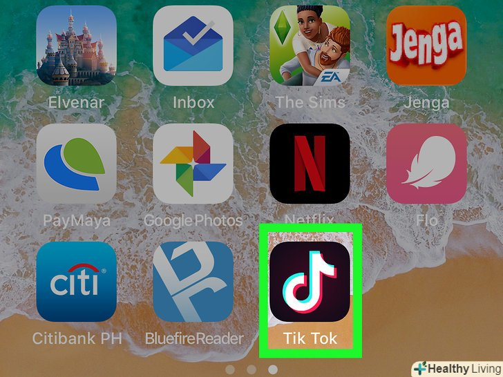 Запустіть TikTok. натисніть на значок у вигляді різнобарвною музичної ноти на чорному тлі; він знаходиться на головному екрані або на панелі додатків (Android).