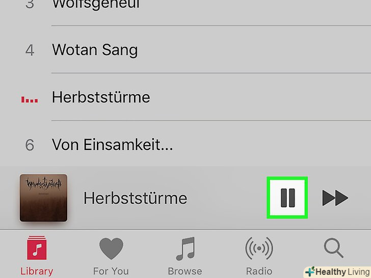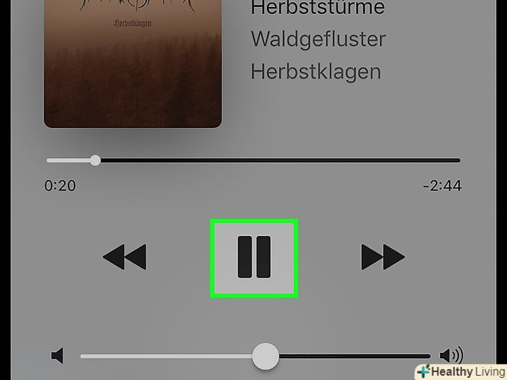 Натисніть на кнопку "Пауза".якщо почалося відтворення пісні, швидко поставте її на паузу, щоб записати її з цього моменту.- Щоб додати в снап тільки фрагмент пісні, торкніться початку цього фрагмента, коли пісня поставлена на паузу.