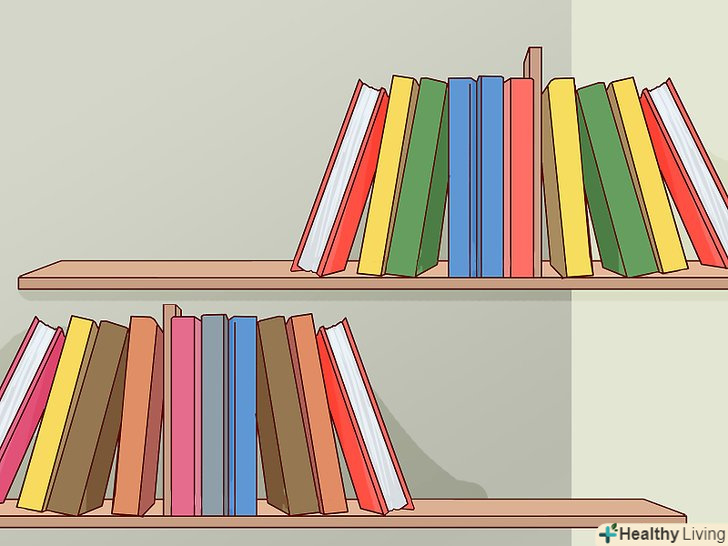 Перевірте всі місця для зберігання книг, перш ніж їх туди ставити.місце зберігання книг має бути сухим. Крім того, враховуйте температурний режим при виборі місця для зберігання книг. Холод сприяє появі вогкості, а надмірне тепло може привести до пересихання паперу і згодом до її руйнування. Надмірна вологість призводить до псування книг, тому вибирайте місце для зберігання книг з низькою вологістю, або зробіть все можливе, щоб її зменшити.[6]- Перевірте горище або підвал, щоб при необхідності видалити цвіль і усунути вогкість.