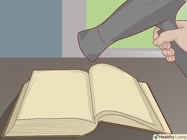 Використовуйте фен для сушіння сторінок.якщо ви хочете прискорити процес, ви можете направити фен на сторінки своєї книги. Однак не перестарайтеся з температурним режимом. Продовжуйте сушити феном книгу, що знаходиться у вертикальному положенні, поки сторінки не висохнуть повністю.