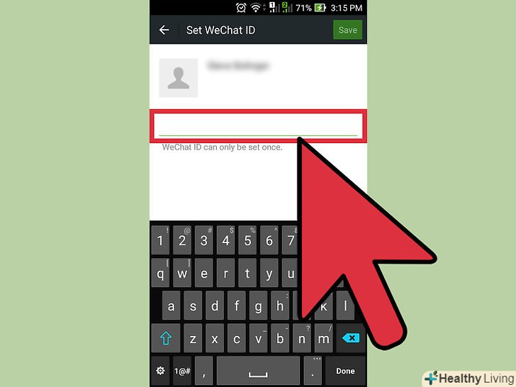 - Майте на увазі, що змінити ідентифікатор WeChat ви можете тільки один раз за весь час використання вашого WeChat аккаунта після початкової настройки програми. Однак ви маєте можливість змінити своє ім'я в WeChat необмежену кількість разів.[2]