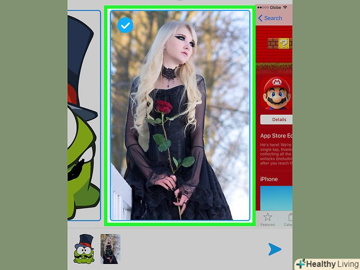 Торкніться кожної фотографії, яку хочете додати.у верхньому лівому кутку обраних фото з'явиться синя галочка.- Щоб скасувати вибір фотографії, натисніть на синю галочку.