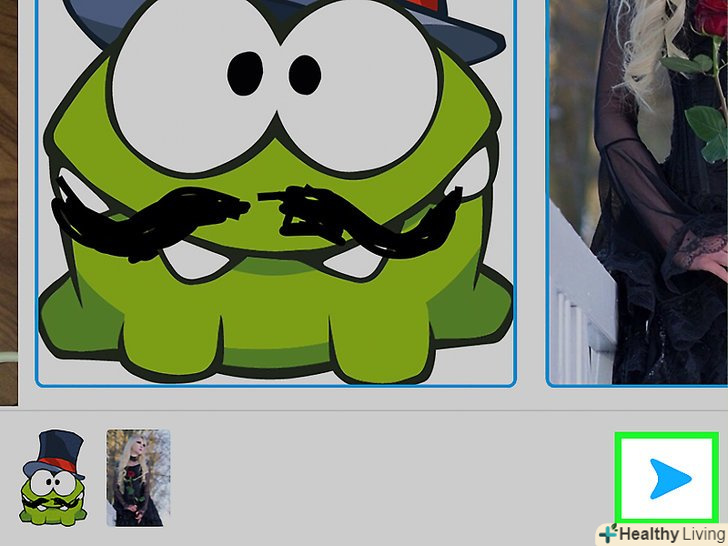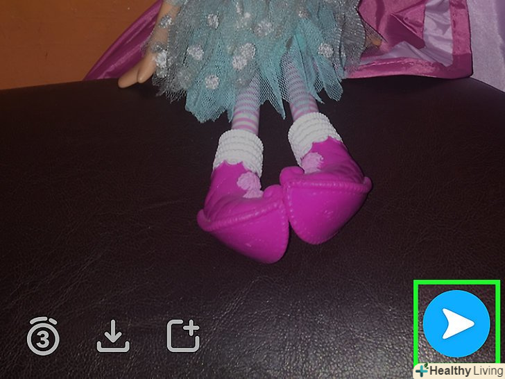 Натисніть на кнопку Send / відправити. це Синя іконка в нижньому правому куті галереї. Фотографії з'являться в чаті і залишаться там до тих пір, поки їх не побачить одержувач.