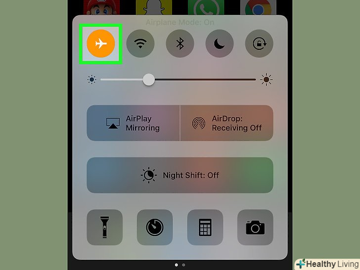 Вимкніть авіарежим.для цього навіть не обов'язково виходити з Snapchat.- Ще раз натисніть на значок літака в пункті управління (iPhone або iPad) або в Центрі повідомлень (Android), щоб відновити підключення до Інтернету.