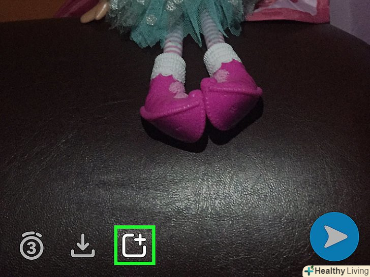 Натисніть на кнопку Add to Story / додати до історії. це квадратна іконка зі знаком плюса внизу екрану.- Якби ви були підключені до Інтернету, то ця функція відразу б додала ваш знімок до історії. Але так як ви перебуваєте в авіарежимі, знімок буде доданий в чергу, чекаючи того моменту, коли підключення до Інтернету буде відновлено.[3]