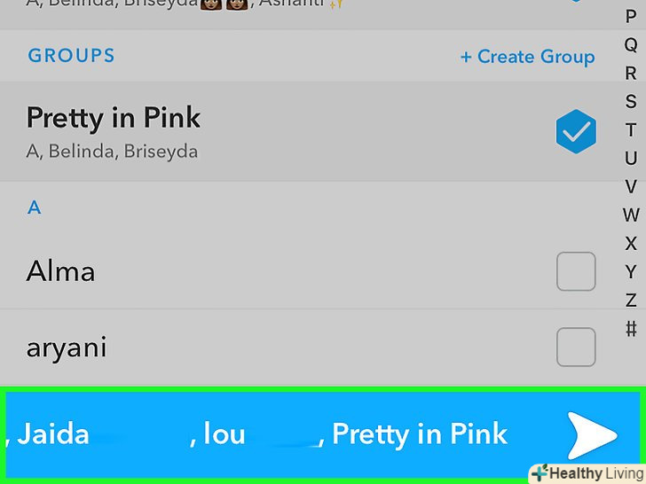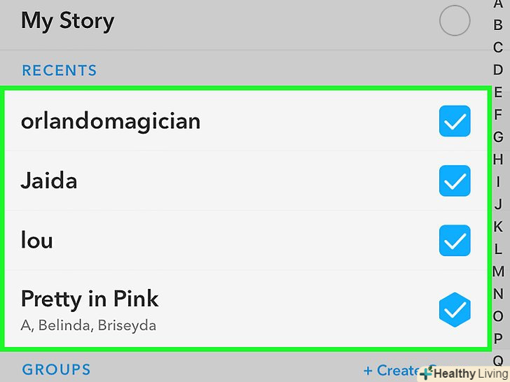 Торкніться тих контактів, з яким бажаєте поділитися знімком.вибрані контакти будуть позначені галочкою.- Щоб видалити одержувача, торкніться його ще раз.