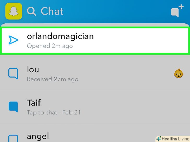 Натисніть на ім'я контакту, щоб відкрити чат з цим контактом.- Це повинен бути контакт, з яким у вас немає непрочитаних повідомлень.