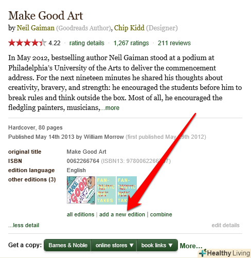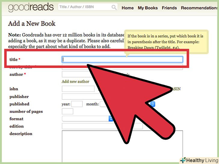 Виконайте пошук по сайту Goodreads вашої книги. ви можете шукати книгу за назвою, ім'ям автора, ISBN (13 цифр, зазвичай починається з '978'), ISBN (10-значний-старий стиль ISBN), а також використовувати безліч інших критеріїв.